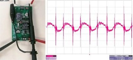 利用正確的測(cè)量方法可以大大地改善測(cè)得紋波結(jié)果。首先,通常使用帶寬限制來(lái)規(guī)定紋波,以防止拾取并非真正存在的高頻噪聲。我們應(yīng)該為用于測(cè)量的示波器設(shè)定正確的帶寬限制。其次,通過(guò)取掉探針“帽”,并構(gòu)成一個(gè)拾波器(如圖2所示),我們可以消除由長(zhǎng)接地引線形成的天線。將一小段線纏繞在探針接地連接點(diǎn)周圍,并將該接地連接至電源。這樣做可以縮短暴露于電源附近高電磁輻射的端頭長(zhǎng)度,從而進(jìn)一步減少拾波。