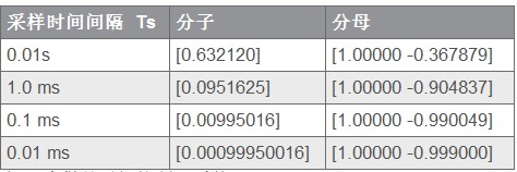 這樣做的目的是為了將內部采樣偏移 (inter sample deviation) 控制在可以接受的最小范圍內。為說明這種情況,表 1 列出了采樣率變化時對控制器系數的影響。在此例中,我們將一個簡單的單極點傳輸函數進行了離散處理。(1) 為傳輸函數的關系式。