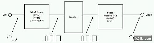舉例來說,典型音頻系統(tǒng)的DSP必須從光碟讀取數(shù)字內(nèi)容,然后處理這些資訊以便加入適當(dāng)音效(2、4或8聲道音頻),最后再將處理完成的位元串流送到音頻數(shù)字模擬轉(zhuǎn)換器(圖1的濾波器/解調(diào)器)。數(shù)字模擬轉(zhuǎn)換器輸出的模擬信號接著會送到揚聲器,重新產(chǎn)生使用者想聽的聲音。如前所述,許多音頻系統(tǒng)(尤其是24位元高傳真系統(tǒng))喜歡將DSP電路的接地面與電源(揚聲器)接地面隔離。這項技術(shù)是用來將接地回路的拾取信號減至最少,進而降低背景噪音和嗡嗡聲。