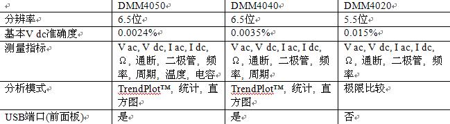 DMM系列提供了多種型號,可以滿足您的需求和預(yù)算。下列萬用表提供了2x4線電阻測量功能。
