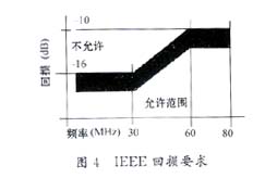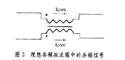 雙絞線中的每對(duì)導(dǎo)線以雙螺旋形結(jié)構(gòu)相互纏繞。如圖2所示,共模電流Icom在兩根導(dǎo)線上以相同方向流動(dòng),并經(jīng)過寄生電容Cp到地返回。在這種情況下,電流產(chǎn)生大小相等極性相同的磁場(chǎng) ,它們的輸出不能相互抵消,引起射頻干擾,嚴(yán)重時(shí)有可能會(huì)造成電路板癱瘓。因此,設(shè)計(jì)者必須采取措施予以防范:除了保證布線合理外,選擇有效的濾波元件也是重要的一方面。磁模塊的共模扼流器部分可以有效地減少共模信號(hào)引起的射頻干擾。如圖3所示:共模電流以相同的方向流過共模扼流圈繞組的每一邊,建立大小相等相位相同的相加磁場(chǎng)使共模扼流圈對(duì)共模信號(hào)呈現(xiàn)高阻抗,通過共模扼流圈的共模電流大大地減弱。磁模塊主要的參數(shù)有:漏電感、線間電容和回?fù)p。一般地,漏電感和線間電容越小性能越好,而回?fù)p應(yīng)當(dāng)符合ANSIX3.263 TP-PMD規(guī)定,如圖4所示。
