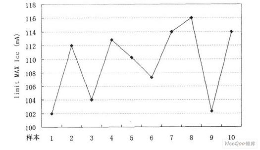 將以上設(shè)計(jì)的限流電路嵌入某穩(wěn)壓芯片(內(nèi)含電荷泵電路)中,實(shí)現(xiàn)流片量產(chǎn)(CMOS工藝)。當(dāng)VDD=3V時(shí),通過測(cè)量量產(chǎn)芯片得到輸出電流極限數(shù)據(jù)。統(tǒng)計(jì)如圖5所示,可知當(dāng)輸出電流處于100~120mA范圍內(nèi)時(shí),限流電路開始工作,關(guān)閉系統(tǒng)即保護(hù)LDO安全。由此可見,本設(shè)計(jì)電路結(jié)構(gòu)簡(jiǎn)單,功能可靠,可廣泛應(yīng)用于電源芯片中。