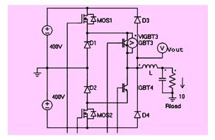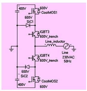 (3) h橋電路上半橋由75a/600v igbt和sic二極管組成,下半橋由mosfet(600v/45mω)組成;