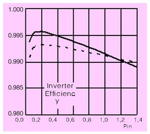 歐洲效率的改善所帶來的經(jīng)濟效益也很容易通過計算得到。例如以一個額定功率3kw的光伏逆變器為例,根據(jù)現(xiàn)在市場上的成本估算,光伏發(fā)電每千瓦安裝成本大約需要4000歐元[2],那也就意味著光伏逆變器每提高歐效1%就可以節(jié)省120歐元(光伏發(fā)電現(xiàn)在的成本大概在每千瓦4000歐元,或者說每瓦 4歐元,包括太陽能電池和光伏逆變器,對于一個3kw的發(fā)電裝置,如果逆變器效率提高了1%,也就是說多發(fā)了30w,那么成本就可以節(jié)省4×30=120 歐元)。提高光伏逆變器的歐洲效率帶來的經(jīng)濟效益是顯而易見的,“不惜成本”追求更高的歐效也成為現(xiàn)在光伏逆變器發(fā)展的趨勢。