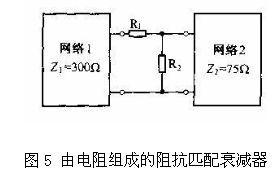 圖5所是由電阻器組成的阻抗匹配衰減器、它接在特性阻抗不同的兩個(gè)網(wǎng)絡(luò)中間,可以起到匹配阻抗的作用。