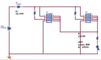圖 8:用NUD4001 器件驅(qū)動一個200mA 的LED 的車廂頂燈電路