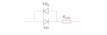 單個(gè)LED 仿真模型如圖4 所示,其中VD 為理想二極管,VDZ為理想單向擊穿二極管,RLED為L(zhǎng)ED等效串聯(lián)阻抗。仿真中設(shè)定單向擊穿二極管VDZ兩端電壓為: UD = 3. 0 V,設(shè)定等效串聯(lián)阻抗為: RLED = 0. 35 Ω。