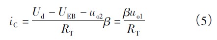 式中,UDZ為二極管壓降,其值等于PNP 晶體管VT 的射極E 與基極B 之間的壓降。電路選擇參數(shù)使uo1 = 0 時(shí)晶體管VT 處于微導(dǎo)通狀態(tài),iC≈0,晶體管VT 的補(bǔ)償電流為:
