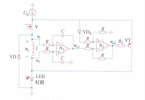 由于電源電壓Ud可能因外界因素波動(dòng),所以由A2組成減法電路消除因Ud變化引起的iC變化,根據(jù)電路可知: