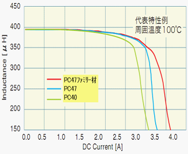 - PC47材質的飽和電流大于普通材質PC40
