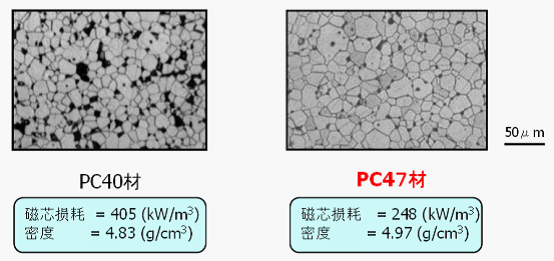 PC47在100℃的磁芯損耗相比PC40降低了約40%