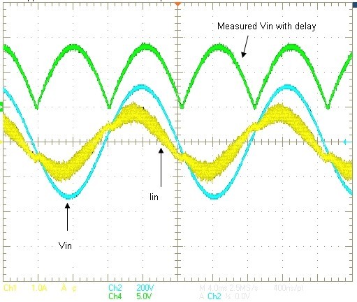 我們知道,PFC電流控制環(huán)路不斷嘗試強(qiáng)制電流與其參考匹配。該參考基本上是AC電壓信號(hào),只是大小不同。因此,如果我們能夠延遲電壓檢測(cè)信號(hào),并將延遲后的電壓信號(hào)用于電流參考生成,便可以讓電流延遲,來匹配AC電壓信號(hào),從而使PF得到改善。這對(duì)一個(gè)模擬控制器來說比較困難,但對(duì)數(shù)字控制而言,只需幾行代碼便可以實(shí)現(xiàn)。