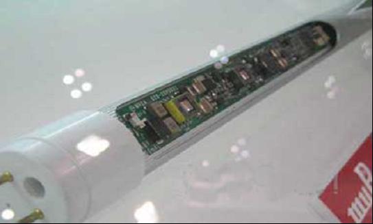 日本村田制作所展示過無需電解電容器的LED照明用電源,該驅(qū)動(dòng)電源是面向Clear Sodick開發(fā)的電源模塊,其輸入輸出電容器采用了該公司的多層陶瓷電容(MLCC),可內(nèi)置于直管型LED照明器具的管內(nèi)。與采用鋁電解電容器時(shí)相比,除了可縮小產(chǎn)品尺寸外,還能延長產(chǎn)品壽命。為了獲得恒定電流,采用了DSP微控制器,開關(guān)頻率約為200kHz。輸出電容器采用了兩個(gè)約5μF的MLCC。輸入電壓支持AC100V以及200V兩種。