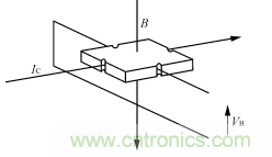 式中:B為磁感應(yīng)強度;IC為控制電流;RH為霍爾系數(shù);d為半導(dǎo)體厚度。