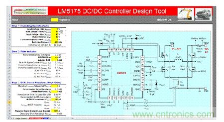 圖3. 步驟1到3分別是指運(yùn)行技術(shù)規(guī)格、電感器篩選和電流感測(cè)。這個(gè)電路原理圖是根據(jù)輸入的以及計(jì)算出來(lái)的組件值自動(dòng)組裝而成。