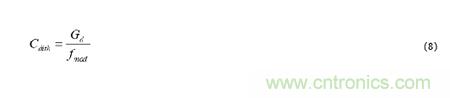 下一個(gè)選項(xiàng)是使用方程式8來(lái)選擇抖動(dòng)電容值,以設(shè)定展頻調(diào)制頻率[5],在這里,Gd是與控制器相關(guān)的電導(dǎo)系數(shù)。