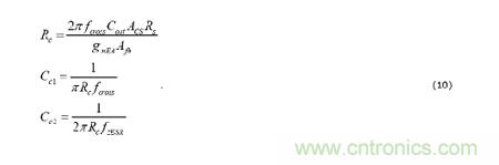 小信號(hào)控制環(huán)路補(bǔ)償性能由2個(gè)基礎(chǔ)波特圖度量標(biāo)準(zhǔn)測(cè)定:交叉頻率和相位裕量。由RC和CC1決定的補(bǔ)償器零頻率提供交叉頻率之前的相位提升。位于輸出電容器ESR零點(diǎn)附近(或者是開(kāi)關(guān)頻率的一半,以低者為準(zhǔn)),隨CC2建立起來(lái)的一個(gè)極點(diǎn)提供噪聲衰減,并且盡可能地將到COMP節(jié)點(diǎn)的輸出紋波傳播降到最低。使用以下方程式選擇補(bǔ)償組件: