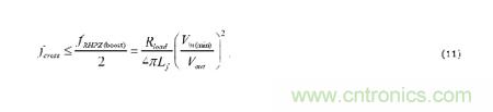 要微調(diào)已經(jīng)增加的帶寬,只需增加補(bǔ)償電阻RC,并且按照需要調(diào)整針對(duì)相位裕量的CC1。當(dāng)然,與升壓相關(guān)的右半平面零點(diǎn) (RHPZ),以及交叉頻率低于RHPZ頻率的50%,實(shí)現(xiàn)可以接受的相位裕量等約束條件由以下方程式給出: