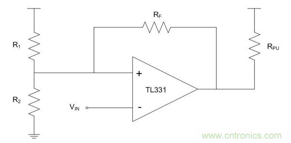 圖2.比較器配置為非反相施密特觸發(fā)器
