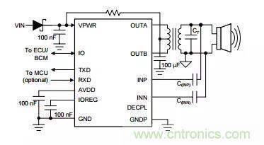 Ÿ時(shí)間指令接口(TCI)或者從模塊連接到局部電子控制單元或直接連接到車(chē)身控制模塊(BCM)(總線配置)的局域互連網(wǎng)絡(luò)(LIN)通信。