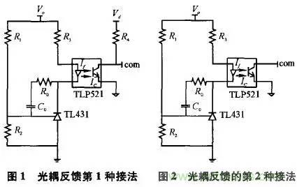 本研究將詳細(xì)分析光耦工作原理,并針對(duì)光耦反饋的幾種典型接法加以對(duì)比研究。1、常見(jiàn)的幾種連接方式及其工作原理常用于反饋的光耦型號(hào)有TLP521、PC817等。這里以TLP521為例,介紹這類(lèi)光耦的特性。TLP521的原邊相當(dāng)于一個(gè)發(fā)光二極管,原邊電流If越大,光強(qiáng)越強(qiáng),副邊三極管的電流Ic越大。副邊三極管電流Ic與原邊二極管電流If的比值稱(chēng)為光耦的電流放大系數(shù),該系數(shù)隨溫度變化而變化,且受溫度影響較大。作反饋用的光耦正是利用“原邊電流變化將導(dǎo)致副邊電流變化”來(lái)實(shí)現(xiàn)反饋,因此在環(huán)境溫度變化劇烈的場(chǎng)合,由于放大系數(shù)的溫漂比較大,應(yīng)盡量不通過(guò)光耦實(shí)現(xiàn)反饋。此外,使用這類(lèi)光耦必須注意設(shè)計(jì)外圍參數(shù),使其工作在比較寬的線性帶內(nèi),否則電路對(duì)運(yùn)行參數(shù)的敏感度太強(qiáng),不利于電路的穩(wěn)定工作。通常選擇TL431結(jié)合TLP521進(jìn)行反饋。這時(shí),TL431的工作原理相當(dāng)于一個(gè)內(nèi)部基準(zhǔn)為2.5V的電壓誤差放大器,所以在其1腳與3腳之間,要接補(bǔ)償網(wǎng)絡(luò)。TL431是三端可編程并聯(lián)穩(wěn)壓二極管