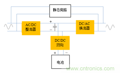 圖1:常規(guī)在線式UPS的框圖