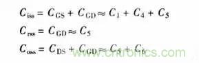 (3)C2+C4代表從柵極到源極P區(qū)間的電容。C2是電介質(zhì)電容,共值是固定的。而C4是由源極到漏極的耗盡區(qū)的大小決定,并隨柵極電壓的大小而改變。當(dāng)柵極電壓從0升到開(kāi)啟電壓UGS(th)時(shí),C4使整個(gè)柵源電容增加10%~15%。
