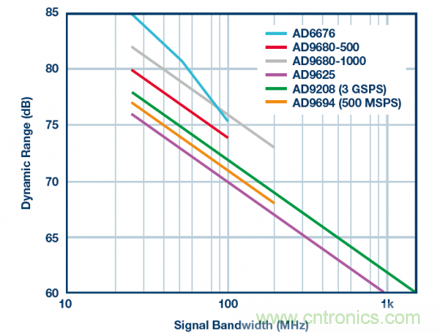 圖5.不同ADC的SNR與信號(hào)帶寬的關(guān)系