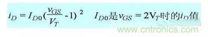 在轉(zhuǎn)移特性曲線上,gm 是曲線在某點上的斜率,也可由iD的表達(dá)式求導(dǎo)得出,單位為 S 或 mS。