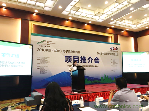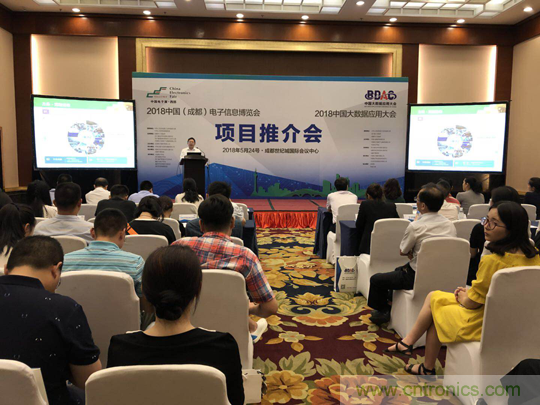 2018年5月24日下午, 2018中國(成都)電子信息博覽會暨2018中國大數(shù)據(jù)應(yīng)用大會在成都世紀(jì)城國際會議中心召開項目推介會。活動由中電會展與信息傳播有限公司總經(jīng)理宋偉主持,四川省經(jīng)濟和信息化委員會電子處蘇平處長,成都市經(jīng)濟和信息化委員會通用電子處副處長鄧敏出席推介會并致辭,中國電子器材總公司總經(jīng)理陳雯海向來賓介紹了2018中國(成都)電子信息博會項目整體情況和2018中國大數(shù)據(jù)應(yīng)用大會項目的相關(guān)進展情況,四川省大數(shù)據(jù)產(chǎn)業(yè)聯(lián)合會常務(wù)副秘書長朱小軍,代表合作伙伴在推介會上進行了發(fā)言,四川省其他30家相關(guān)學(xué)協(xié)會等也參加了本次活動。另外,現(xiàn)場還有超過50家媒體及100家成都及四川地區(qū)電子信息產(chǎn)業(yè)相關(guān)企業(yè)及組織出席項目推介會。