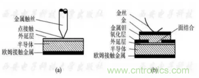肖特基勢壘二極管有兩種管芯結(jié)構(gòu):點(diǎn)接觸型和面結(jié)合型如圖所示。