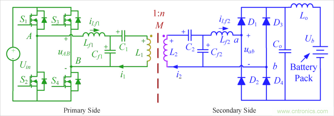為了適應負載的波動,往往采用LCC電路補償形式。它可以在了負載變化的情況下,維持發(fā)送線圈中的電流恒定,從而提高了系統(tǒng)的穩(wěn)定性。