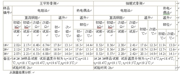 熱電偶法和電阻法變壓器溫升測(cè)量結(jié)果表(純電阻負(fù)載)
