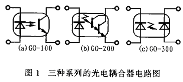 光電耦合器的主要結(jié)構(gòu)是把發(fā)光器件和光接收器件組裝在一個密閉的管殼內(nèi),然后利用發(fā)光器件的管腳作輸入端,而把光接收器的管腳作為輸出端。當在輸入端加電信號時,發(fā)光器件發(fā)光。這樣,光接收器件由于光敏效應(yīng)而在光照后產(chǎn)生光電流并由輸出端輸出。從而實現(xiàn)了以“光”為媒介的電信號傳輸,而器件的輸入和輸出兩端在電氣上是絕緣的。這樣就構(gòu)成了一種中間通過光傳輸信號的新型半導(dǎo)體電子器件。光電耦合器的封裝形式一般有管形、雙列直插式和光導(dǎo)纖維連接三種。圖1是三種系列的光電耦合器電路圖。