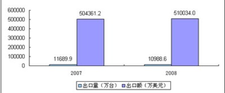 近年以來(lái),全球DVD播放機(jī)市場(chǎng)呈現(xiàn)相對(duì)飽和、增長(zhǎng)放緩。席卷全球的金融風(fēng)暴,高額的核心技術(shù)專(zhuān)利費(fèi),人民幣的升值,原材料價(jià)格持續(xù)上漲和勞動(dòng)力價(jià)格的上升等因素使國(guó)產(chǎn)DVD低成本的出口優(yōu)勢(shì)逐步減弱,因此,2008年1-10月DVD播放機(jī)出口市場(chǎng)呈現(xiàn)“量降價(jià)漲”的趨勢(shì),2008年1-10月出口為10988.59萬(wàn)臺(tái),同比下降6%,出口額為510034萬(wàn)美元,同比增長(zhǎng)1.1%。出口仍以O(shè)EM加工為主。