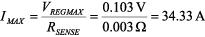 下一步需要檢查SOA圖,以選擇合適的能工作在最壞條件的MOSFET。在短路到地的最壞條件下,可假設(shè)VDS等于 VMAX,為 13.2V,這是將MOSFET源極拉到地時(shí)MOSFET上能產(chǎn)生的最大電壓。在調(diào)節(jié)階段,最壞條件將取決于數(shù)據(jù)手冊(cè)中熱插拔控制器調(diào)節(jié)點(diǎn)的最大值,這個(gè)值為103 mV。于是,電流可根據(jù)下式進(jìn)行計(jì)算: