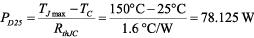 在與MOSFET SOA圖進(jìn)行比較之前,我們需要考慮MOSFET的溫度降額,因?yàn)镾OA是以室溫(TC = 25°C)下的數(shù)據(jù)為基礎(chǔ)的。首先計(jì)算TC = 25°C下的功耗: