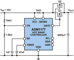 盡管切斷或開(kāi)啟的電流會(huì)比較大,但大電流設(shè)計(jì)的一些微妙之處卻常常未得到充分的考慮。“細(xì)節(jié)決定成敗”,本文將重點(diǎn)分析熱插拔控制電路中各部件的功能及重要性,并深入分析在設(shè)計(jì)過(guò)程中使用ADI公司ADM11773熱插拔控制器時(shí)的設(shè)計(jì)考慮和器件選型標(biāo)準(zhǔn)。