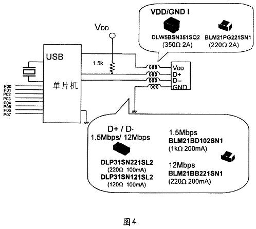 這里舉日本村田制作所的片式共模電感為例,村田的片式共模電感擁有多個(gè)不同的子系列,其中:DLPS系列為薄膜型片式共模電感,在一個(gè)元件中含有一個(gè)雙路工作的共模電感。該系列產(chǎn)品有線路阻抗匹配功能(共模阻抗為67~550Ω,其間有若干檔),可在不造成高速信號(hào)傳輸失真情況下實(shí)現(xiàn)差分信號(hào)的噪聲抑制。用于USB2.0、IEEE1934、LVDS的高速差分信號(hào)線的共模噪聲抑制。常用于移動(dòng)電話、筆記本電腦、數(shù)碼相機(jī)和數(shù)碼錄像機(jī)。