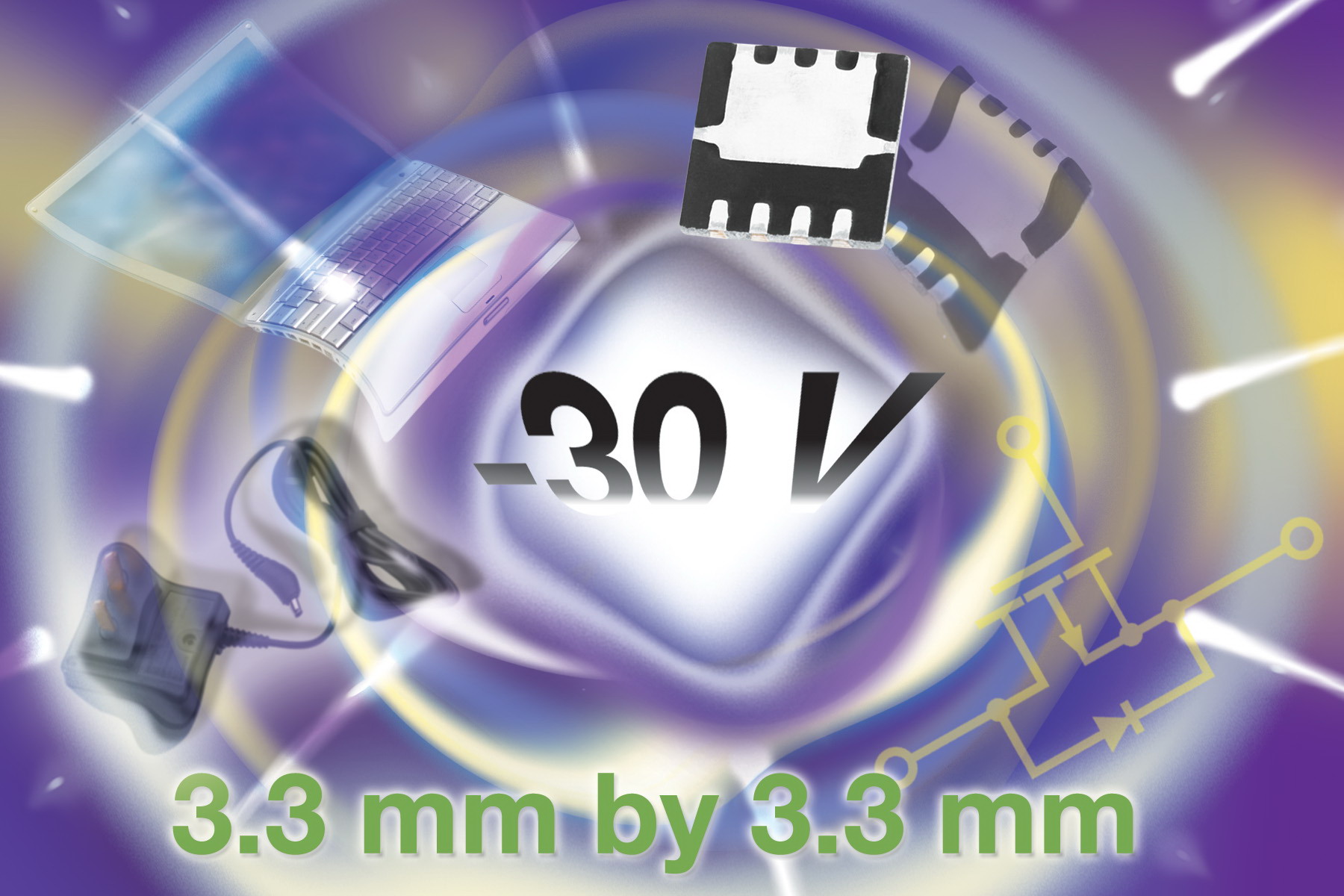 Si7625DN在10V和4.5V下的導(dǎo)通電阻低至7mΩ和11mΩ,這些數(shù)值比此前3.3mmx3.3mm占位面積的30V器件在10和4.5V下的導(dǎo)通電阻分別低30%和39%。