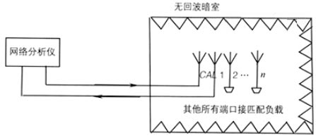 (3)將測(cè)量系統(tǒng)與被測(cè)天線的第i個(gè)饋電端口相連接,被測(cè)天線的其余端口一律接匹配負(fù)載,在工作頻率范圍內(nèi)進(jìn)行復(fù)反射系數(shù)Sii的測(cè)量,測(cè)量的Sii讀數(shù)就是第i個(gè)饋電端口的自反射系數(shù);