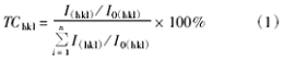 在XRD測(cè)量中,以晶面(hkl)的織構(gòu)系數(shù)TC(texturecoefficient)來(lái)表征晶面擇優(yōu)程度。