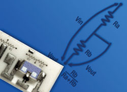 目前主要有兩種實(shí)現(xiàn)電阻型分壓器的方式:通過將兩個(gè)分立的片狀電阻連接到公共端,或者通過使用分壓器封裝在內(nèi)部的電阻網(wǎng)絡(luò)進(jìn)行連接。你所選擇的類型可能會對分壓器的性能有很大的影響。
