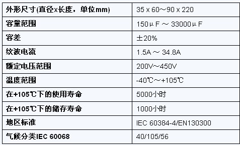 器件采用8mm M5高位接線柱或13mm M6低位接線柱。電容器符合RoHS指令2002/95/EC,提供標準或螺栓螺母版本。