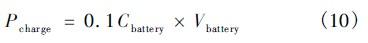 式(8)(9)中I為負(fù)載所需電流,T為負(fù)載每日工作小時(shí)數(shù)。Ta為平均日照時(shí)間。t為連續(xù)雨天數(shù),Ksafe為安全系數(shù),Ksoc為蓄電池容許放電深度,η為變換器效率。按三段式10小時(shí)充電法,在恒流充電階段,充電電流icharge為0.1Cbattery。則恒流充電階段,充電功率為: