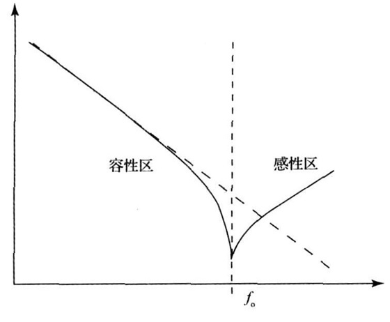 圖2 中的f 0 是電容與其寄生電感構(gòu)成的諧振回路的諧振頻率, 稱之為自諧振頻率, 實線部分為實際的電容頻率特性曲線, 虛線為理想無寄生電感的電容特性曲線。可見, 在低于自諧振頻率時, 電容呈現(xiàn)容性, 阻抗隨頻率增高而減小; 然而當頻率超過自諧振頻率時, 電容表現(xiàn)出阻抗隨頻率增高而上升的趨勢, 這恰好是電感的特性。該曲線表明實際的電容僅能工作于自諧振頻率以下, 高于自諧振頻率時, 電容則表現(xiàn)為感性, 無法再繼續(xù)作為電容使用了。可見, 準確的測得電容的自諧振頻率, 求出其寄生電感, 對于電容的正確使用有著非常重要的意義。然而該電感往往非常小, 通常為nH 級別, 一般的LCR 電橋無法測量這種微小的電感。因此就需要一種不同于電橋法的測量這種微小電感的方法。