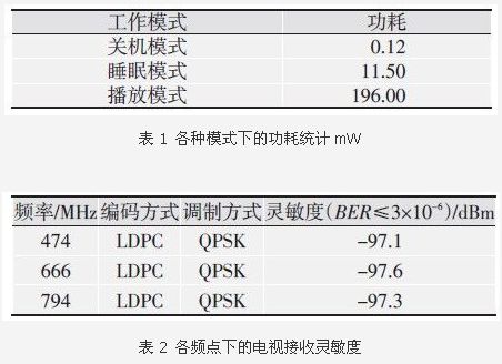 從測(cè)試結(jié)果可知,功耗結(jié)果滿足智能手機(jī)實(shí)際使用要求,在UHF的整個(gè)頻段,CMMB電視接收模塊的靈敏度都要優(yōu)于規(guī)范要求的-95 dBm.