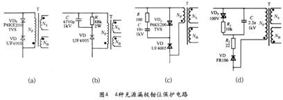 漏極鉗位保護(hù)電路主要有以下4種設(shè)計(jì)方案(電路參見圖4):