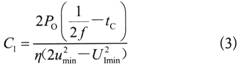 設(shè)交流電壓u的最小值為umin。u經(jīng)過橋式整流和CI濾波,在u=umin情況下的輸入電壓波形如圖2所示。該圖是在Po=POM,f=50Hz、整流橋的導(dǎo)通時(shí)間tC=3ms、η=80%的情況下繪出的。由圖可見,在直流高壓的最小值UImin上還疊加一個(gè)幅度為UR的一次側(cè)脈動(dòng)電壓,這是CI在充放 電過程中形成的。欲獲得CI的準(zhǔn)確值,可按下式進(jìn)行計(jì)算: