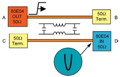 泰克8000B系列儀器中安裝有80E04電子采樣模塊,是成功測量串擾的理想儀器組合。80E04是一款雙通道采樣模塊,包含有一個TDR階躍電壓產(chǎn)生器,能產(chǎn)生上升時間為17ps的250mv窄脈沖,并以50歐姆的源阻抗輸出。測試人員只需連接待測PCB即可。